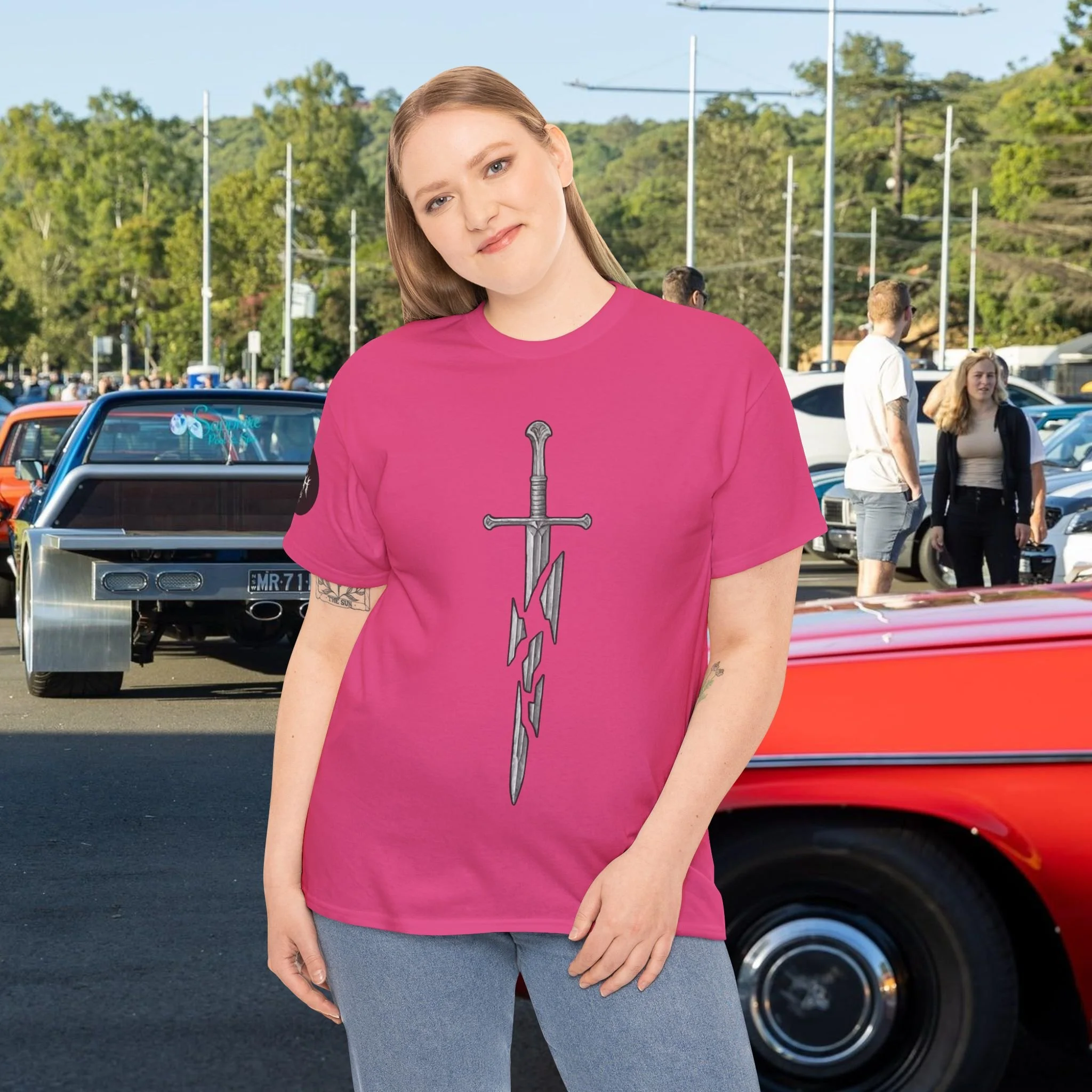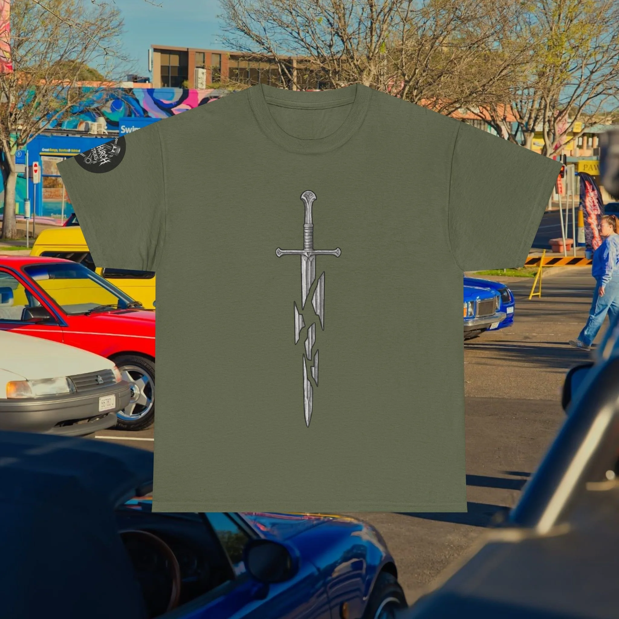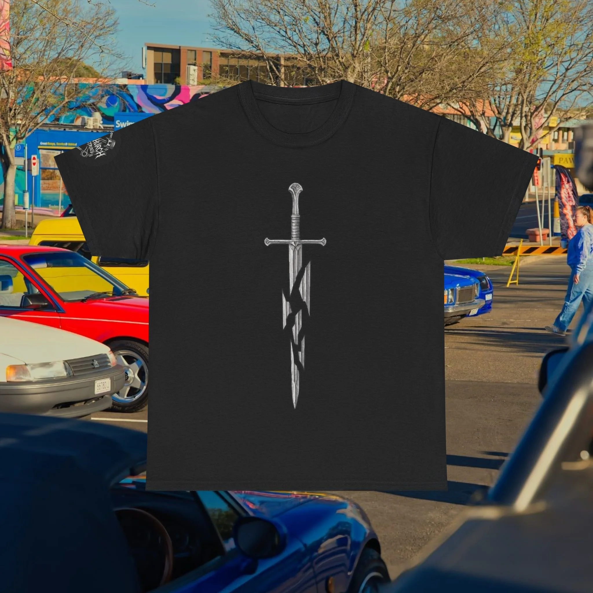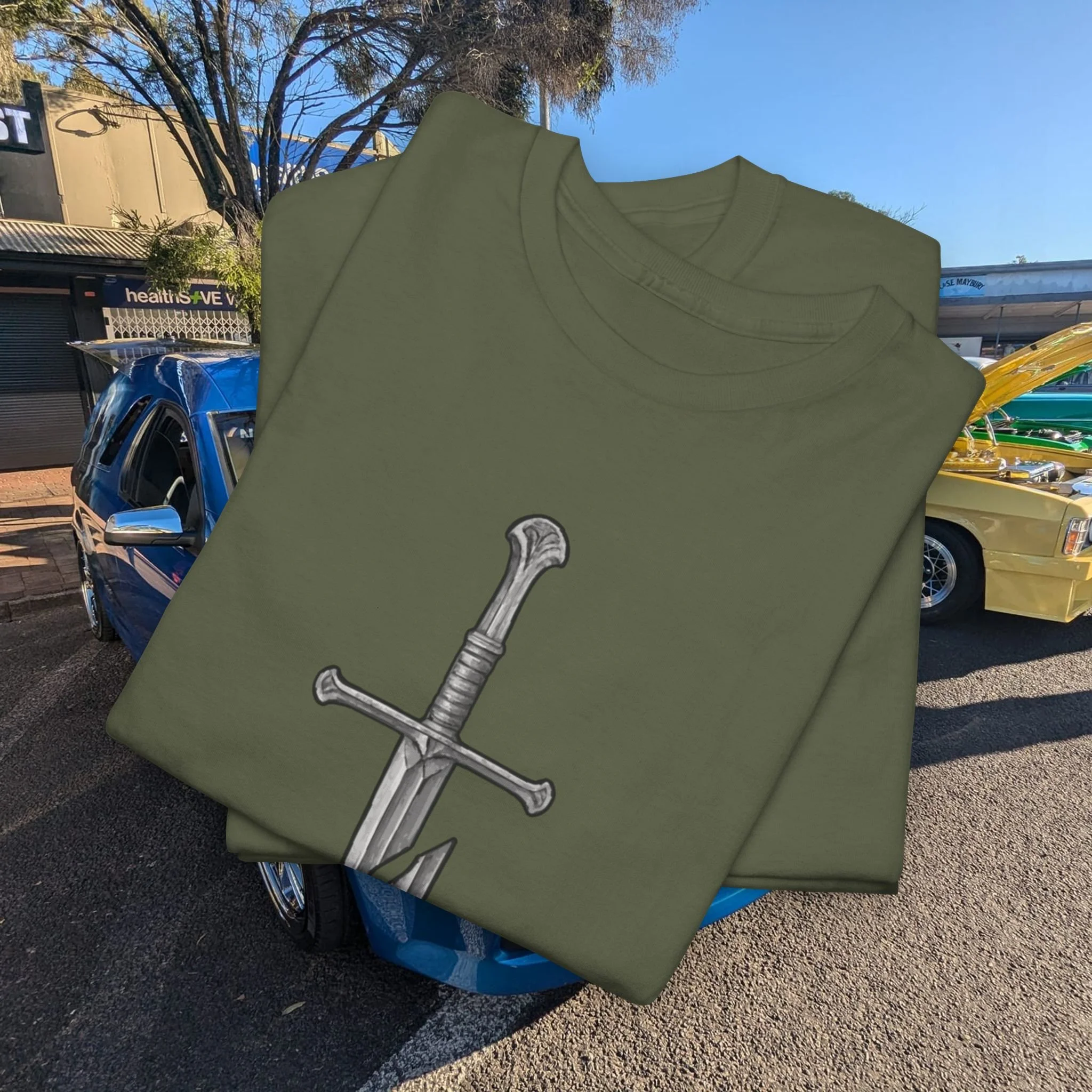 Step into a fusion of classic fantasy and car culture with our Car Church Industries Andúril T-Shirt. Available in multiple colors like Military Green, Black, and more, this shirt features a stylish graphic of the iconic Andúril sword. It’s a perfect blend of your love for epic quests and the laid-back vibe of the automotive scene.