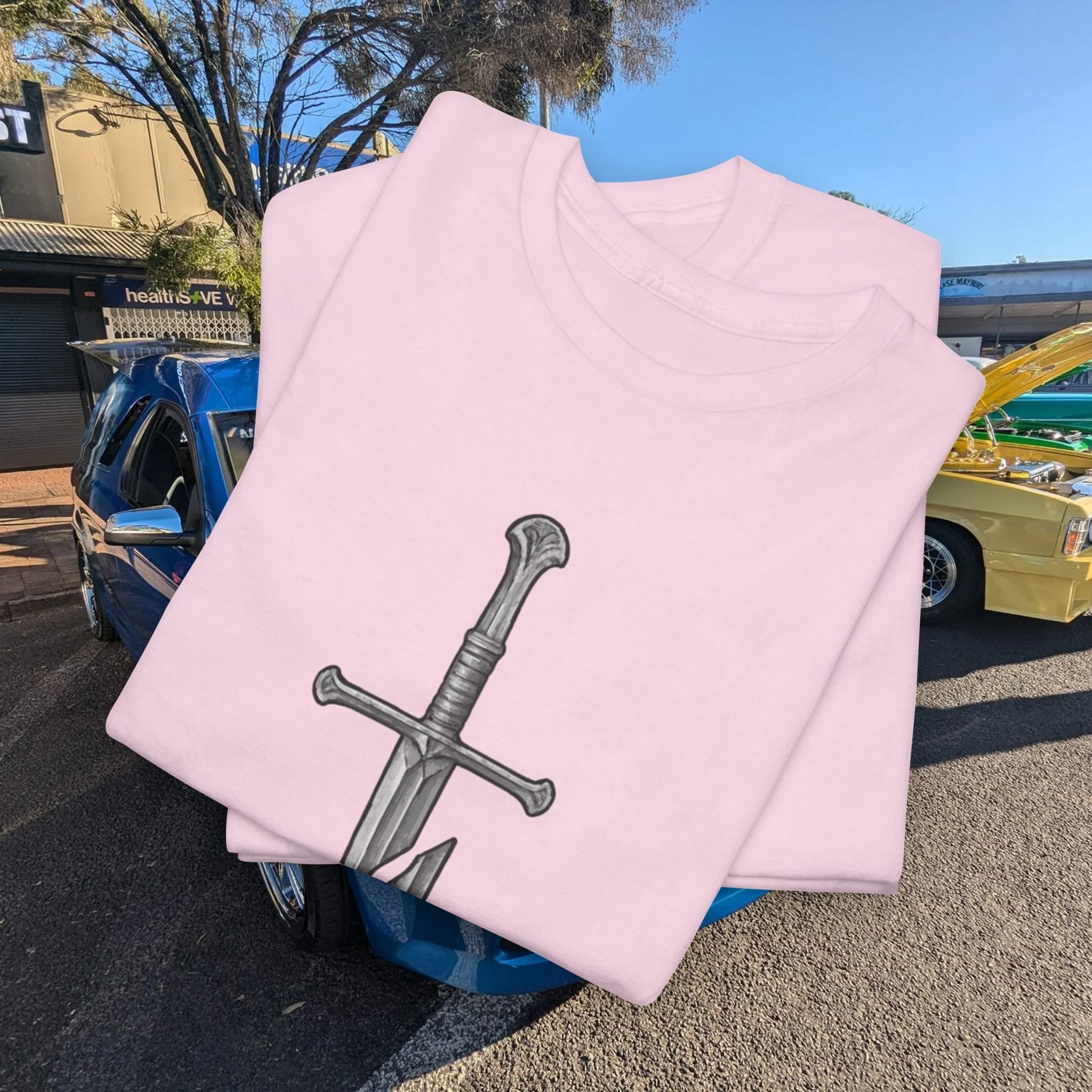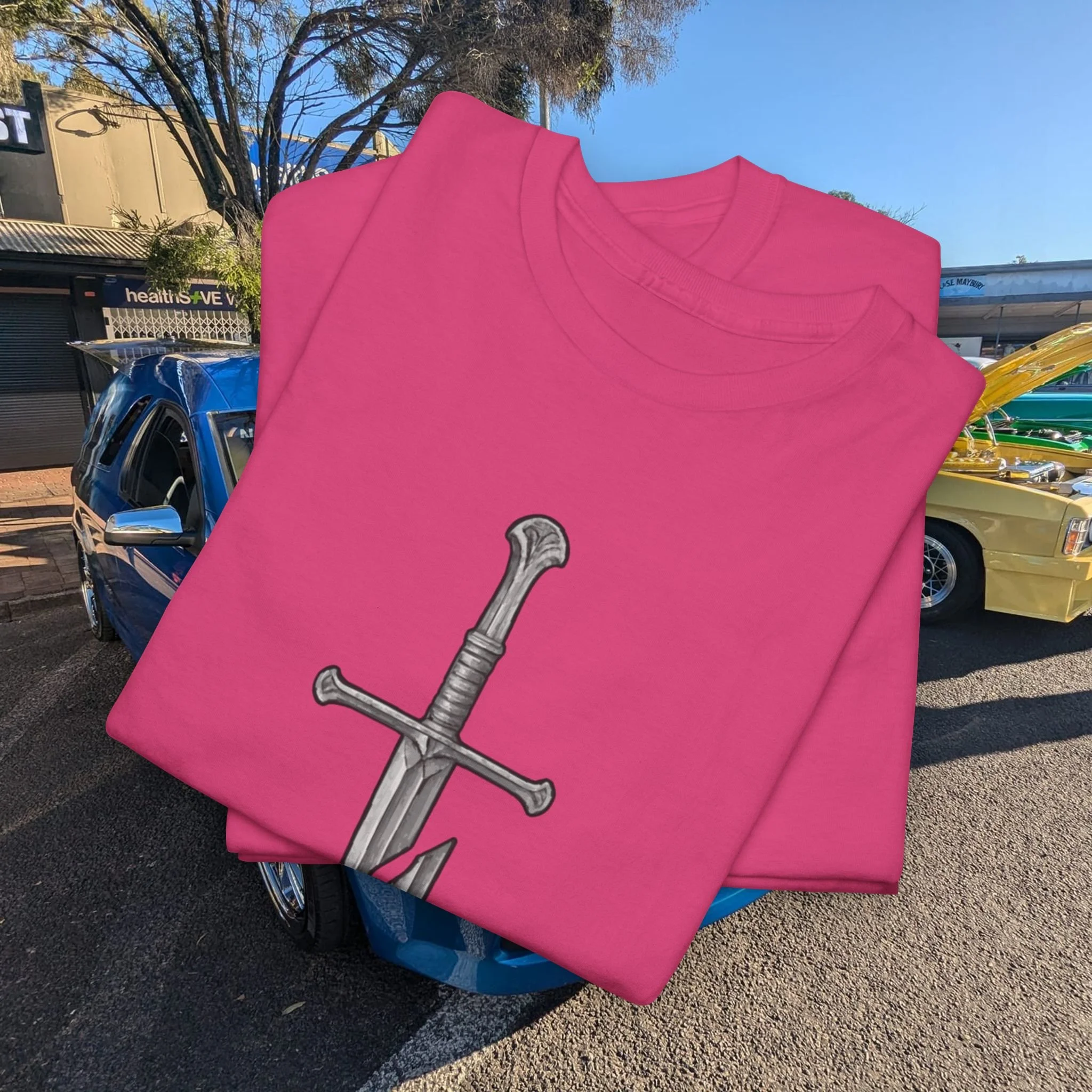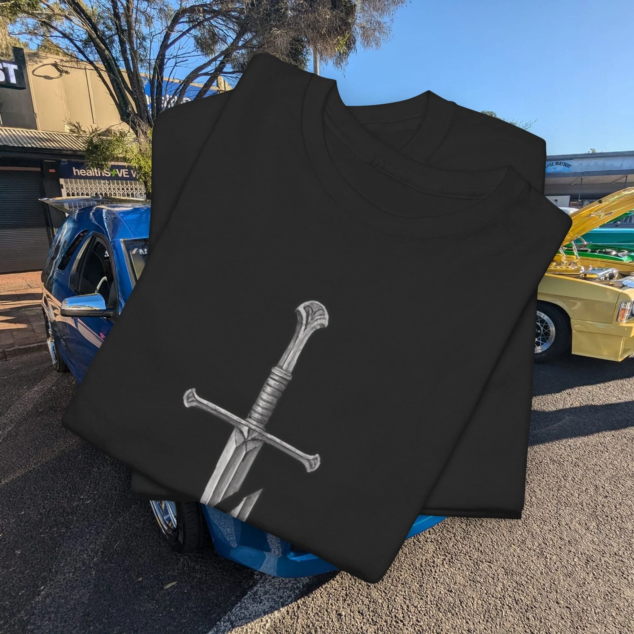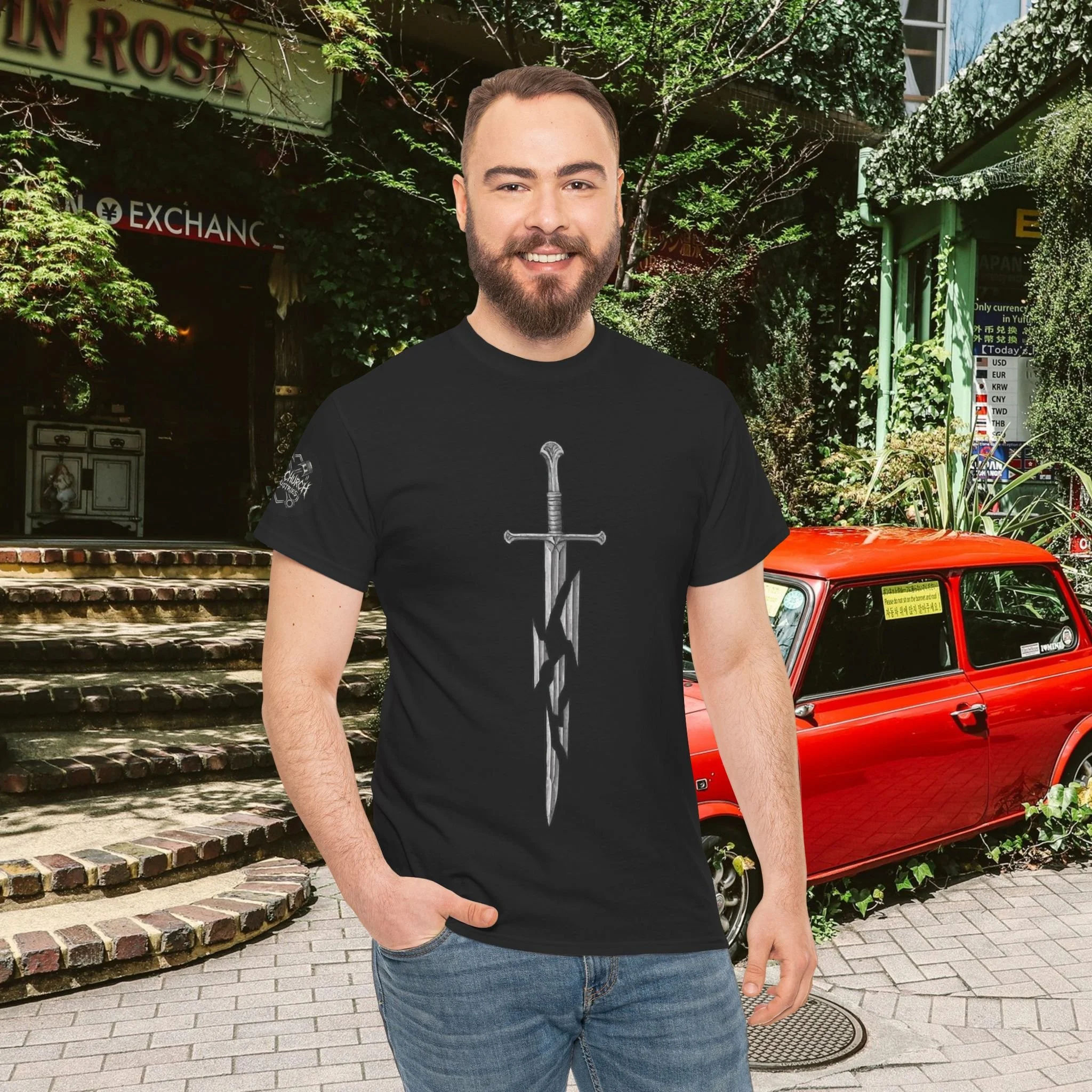 Step into a fusion of classic fantasy and car culture with our Car Church Industries Andúril T-Shirt. Available in multiple colors like Military Green, Black, and more, this shirt features a stylish graphic of the iconic Andúril sword. It’s a perfect blend of your love for epic quests and the laid-back vibe of the automotive scene.