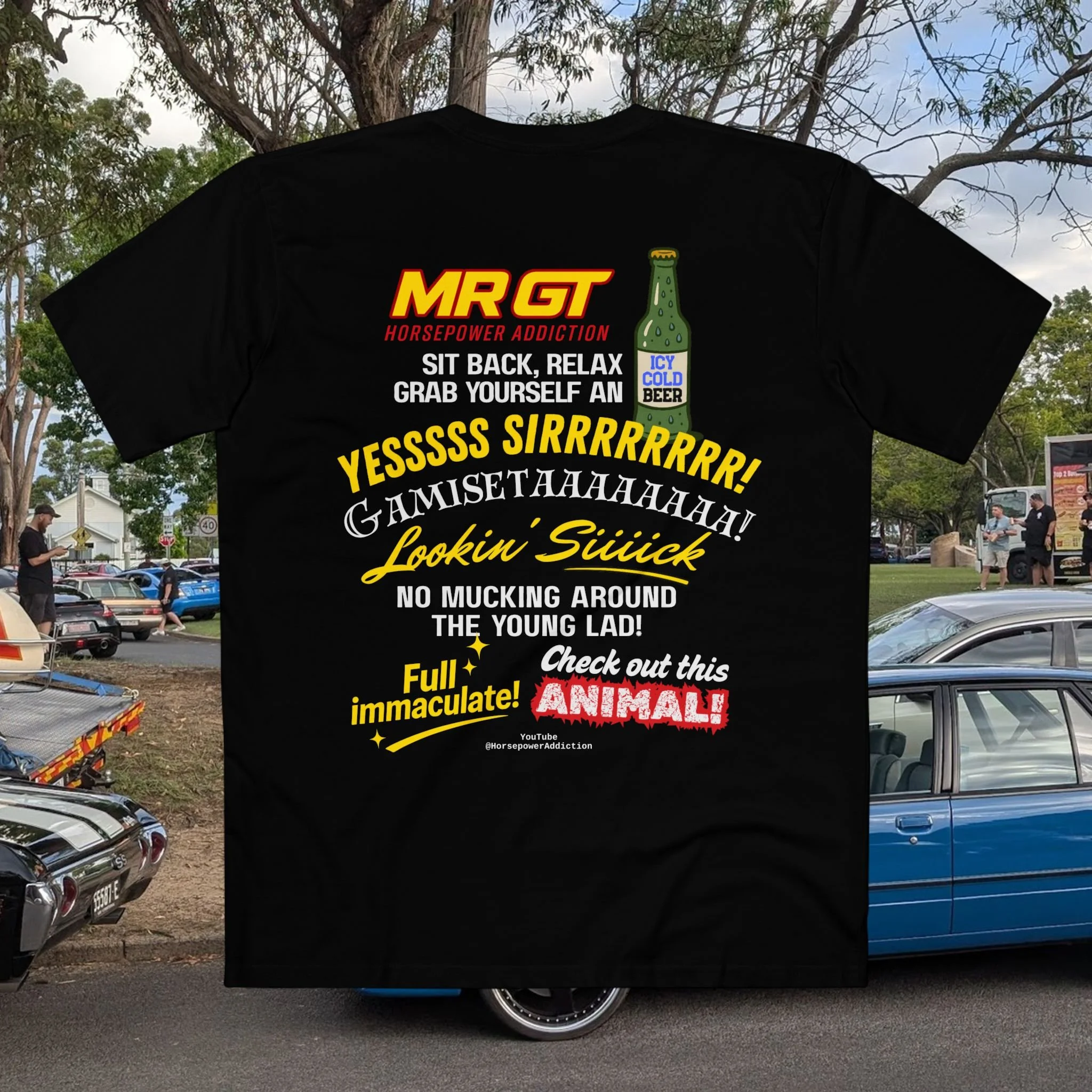 Stay warm while repping the classic MR GT look. This hoodie keeps it simple with the iconic MR GT Horsepower Addiction logo printed proudly on the front, making it a clean but unmistakable piece for any fan.